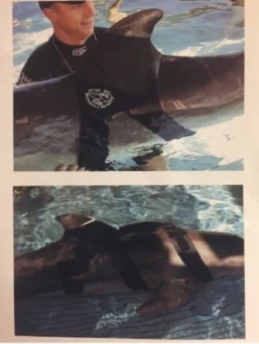 Liko was a dolphin in Hawaii who got caught in fishing line when he was three years old. The bottom of his fin was severely torn. Dolphins don’t heal like we do when cut, so a scientific team worked together and found a way to help him. They used a piece of pigs bladder as a ‘bandaid’ along with LED therapy.